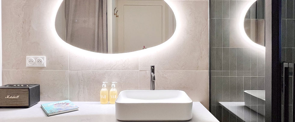 Nos deux clients ont eu un véritable coup de foudre pour cet appartement typiquement parisien, niché au cœur de l’un des plus anciens quartiers de la capitale. Poutres apparentes, cheminée majestueuse, parquet ancien… tout y respirait le charme de l’époque. Cependant, les sols présentaient des niveaux différents et la salle de bain se cachait au fond d’une minuscule cuisine en couloir. Le projet a permis de redonner cohérence et confort à l’ensemble : la salle de bain est désormais fonctionnelle et lumineuse malgré l’absence de fenêtre, avec un double accès depuis la chambre et la cuisine. Cette dernière s’ouvre désormais sur le séjour pour offrir un véritable espace d’entrée, un bar convivial et des rangements supplémentaires. Les niveaux ont été harmonisés et l’appartement retrouve aujourd’hui une unité chaleureuse, portée par des teintes douces et des matériaux authentiques.